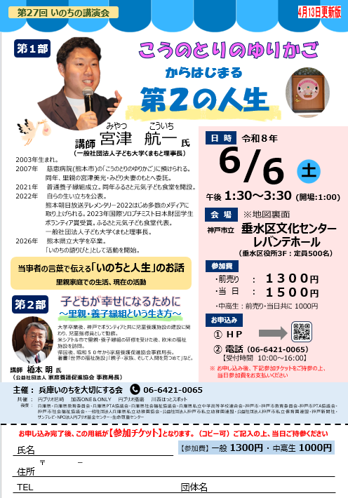 お申し込みは、下記「いのちの講演会申込み」フォームからお願いします。